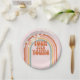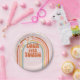 Des assiettes de fête de 4e anniversaire d'inspiration rétro avec des hippies à l'arc-en-ciel, des marguerites et des polices et des couleurs boho.
