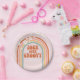 Plaques de fête de 4ème anniversaire d'inspiration rétro Four Ever Super avec arc-en-ciel hippie, marguerites et polices et couleurs boho.