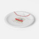 Plats comportant une illustration bleue d'un campeur et de donner un petit coup vintages rouges. Invitations assorties et plus de mariage Look for chez Paperie de Jill.
