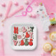 Retro Christmas Holly Jolly Vibes Tendance Vacances Papier Plaques présente le texte "Holly Jolly Vibes" dans un script rétro en rouge, vert et rose accentué d'étoiles et de mignons visages heureux. Conçu par ©Evco Holidays www.zazzle.com/store/evcoholidays