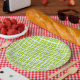 Assiettes En Carton Retro Pique-nique Plaid Motif en Lime Vert et Blan