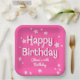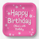 Ces plaques de papier d'anniversaire d'inspiration rétro présentent un arrière - plan rose vif aux étoiles roses et une typographie d'inspiration rétro. Le look est amusant, féminin et heureux !