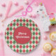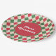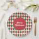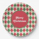 Festif et rustique à l'aspect vintage harlequin motif en diamant en vacances rouge et vert sur arrière - plan en détresse / vieilli. Texte Joyeux Noël personnalisable en cercle central