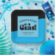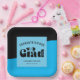 Cette plaque de papier carré de remise de diplômes comporte le mot "grad" dans un texte rétro amusant et audacieux. L'arrière - plan est bleu vif et noir et le texte personnalisé vous permet de personnaliser avec le nom du diplômé, de l'école et de l'année de graduation.