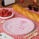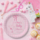Assiettes En Carton Ribbon pour bébé fille Douche rose soie oie rose