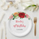 This beautiful and elegant plate features watercolor red, pink and orange roses with foliage. The text combines handwritten script and serif fonts for a stylish and modern look. This is perfect for a summer rustic birthday.