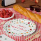 This beautiful and elegant plate features watercolor red, pink and orange roses with foliage. The text combines handwritten script and serif fonts for a stylish and modern look. This is perfect for a summer rustic bridal shower.