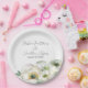 Cette assiette florale romantique présente un fond blanc simple et élégant avec des fleurs de ranunculus à l'aquarelle. Un délicat bouquet de ranunculus et de verdure est représenté en bas. Les noms d'un jeune couple et la date de mariage sont imprimés en haut. Vous pouvez personnaliser l'assiette pour inclure vos propres noms ou texte personnalisés.