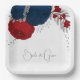 Assiettes En Carton romantique rouge & fleurs de marine argent papier
