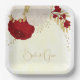 Assiettes En Carton Romantique rouge foncé & fleurs blanches or