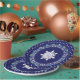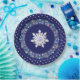 Flocon de neige avec mon dessin d'un vitrail d'une ancienne église européenne : une fenêtre rose, avec des touches d'une grande variété de couleurs, y compris les tons bleus, sur un arrière - plan bleu marine. Inposition de strass bleu clair (dessiné). Pour un vieux motif d'hiver. Ce motif est également disponible en rouge cardinal dans mes collections "cardinal rouge rosace".
