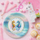 Jolies assiettes en papier élégantes rose, bleue et or à motif d' hippocampes aquarellées pour la plage. Celles-ci sont idéales pour des friandises de mariage ou un bar à bonbons.