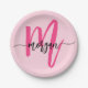 Assiettes En Carton Rose Chaud Moderne Écriture Féminine Monogramme No