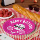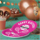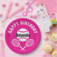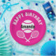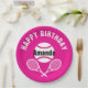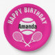 Impressionnantes assiettes en papier rose vif avec boule de tennis blanche et textes personnalisables.