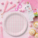 Ensemble de huit plaques de papier de 9 po avec une image de en vichy rose bébé; parfait pour un baby shower ou une petite fête de fille. Voir la boîte à bonbons, la tasse, le lanceur, la théière et les dessous de verre correspondants. Voir l'ensemble de la collection Kids' Corner Plate dans le FOOD/BEV | Section Plats.