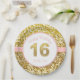Assiettes En Carton Rose et 16èmes plats d'anniversaire d'or