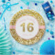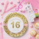 Le bonbon 16 plats d'anniversaire en rose et or sont fascinant et beau. Ils ont un arrière - plan scintillant et un numéro scintillant 16 d'or d'or au centre. Le "joyeux anniversaire (nom)" est écrit en manuscrit rose.