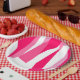 Assiettes En Carton Rose et blanc