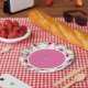 Assiettes En Carton Rose Et Blanc Lumineux