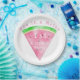 Personnalisez cette amusante assiette de fête d'anniversaire de pastèque rose et vert "One in a Melon".