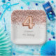 Plaques en or rose 4ème anniversaire de fête pour décorer les tables de fête d'anniversaire en blanc texturé design imprimé.
