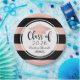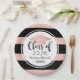 Les plaques de papier de graduation personnalisées portent le nom de l'année de classe et de l'étudiant dans un script de calligraphie noir élégant et élégant avec or rose / casquette gris rose roux et arrière - plan à motif rayé audacieux. Défiler la conception des accents.