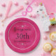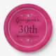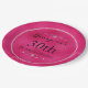 Ces assiettes de fête personnalisées présentent un design glamour. Une bordure scintillante de faux strass roses encadre l'assiette. Le fond est un design en feuille de couleur rose vif brillant. Un nom et une date d'anniversaire sont imprimés au centre, que vous pouvez personnaliser pour inclure votre propre nom, titre d'événement ou autre texte. Des diamants accentuent les parties supérieure et inférieure de la zone de texte. C'est parfait pour un anniversaire, une fête de mariage ou un autre événement spécial.