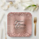 Créez vos propres plaques de papier en forme de carré de 9 po pour sa célébration spéciale du 15e anniversaire. Il s'agit d'un style de script de calligraphie très sophistiqué avec floraison décorative, vous pouvez avoir besoin de centrer pour différentes lettres. Conservez ou supprimez le monogramme. Faux brillante parties scintillant en or rose contre une coordination faux brillant image graphique en feuille de métal brossé. Toutes les brillances brillantes et roses de ce design girly moderne sont des graphismes numériques.