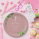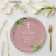Cette élégante assiette en papier baptême rose poussiéreux vert eucalyptus botanique peut être personnalisée avec vos informations en typographie chic. Conçue par Thisisnotme©