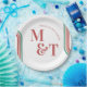 Assiettes En Carton Rose | Retro Seventies Stripes | Monogramme Mariag
