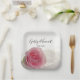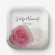 Personnalisez la jolie Rose rose sur les Plaques en papier Mariage blanc avec les noms de la mariée et du marié et date à utiliser à votre classe fête de jardin douche nuptiale ou réception de mariage. Ces élégantes assiettes jetables à fleurs personnalisées présentent une photo florale d'une fleur rose rose et d'une nuptiale blanche avec un arrière - plan blanc.