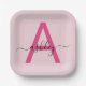 Assiettes En Carton Rose vif moderne écriture girly monogramme nom