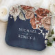 Élégantes plaques de papier mariage à thème en terre cuite avec de belles fleurs terreuses.