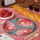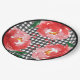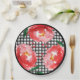 Assiettes en papier pour fête avec des roses rouges sur fond à carreaux noir et blanc, parfaites pour une fête de Derby, une baby shower sur le thème de Derby et plus encore. ARTICLES assortis dans notre collection.