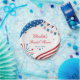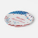 Sortez le barbecue et dépoussiérez-le à temps pour votre fête de douche de mariage estivale du 4 juillet avec vos meilleures amies. Ajoutez une touche d'élégance à votre douche avec ces assiettes en papier rouge, blanc et bleu présentant un motif de fête avec des fanions, des feux d'artifice et les couleurs du drapeau américain dans une disposition cool. Ajoutez votre texte personnalisé en cliquant sur le bouton "Personnaliser" ci-dessus. Également parfait pour personnaliser pour les fêtes, les défilés, les événements, les soldes, les mariages et autres événements nationaux et locaux que vous avez prévus pendant cette période patriotique.