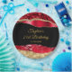Cette plaque de fête d'anniversaire élégante et glamour présente des larmes de glamour en faux parties scintillant rouge et or sur un arrière - plan noir. Le texte combine écriture manuscrite et polices sans serif modernes pour un look élégant et sophistiqué.
