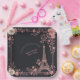 Une table bien conçue est essentielle pour la décoration d'une fête de mariage, et ces assiettes en papier Paris Blush Pink French Miss to Mrs Bridal Shower créent une célébration sans effort. Associez-les à des serviettes, des gobelets et des chemins de table coordonnés pour créer un décor de vaisselle thématique français shabby chic cohérent. Le design présente une structure de la Tour Eiffel florale avec un décor rose blush sur fond sombre. Organiser une fête de mariage devrait être joyeux, pas stressant. Ces assiettes en papier jetables permettent un nettoyage facile tout en maintenant un style décoratif d'élite. Après la célébration, il suffit de jeter la vaisselle et de profiter des souvenirs sans la corvée de vaisselle. Leur conception légère mais robuste les rend adaptées aux rassemblements intérieurs et aux fêtes de jardin en plein air. Le texte est