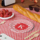 Assiettes En Carton Rouge monogramme sur point Polka blanc