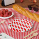 Assiettes En Carton Rouge sur blanc grand format Pois