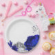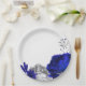 Assiettes En Carton royal bleu & argent fleurs botaniques