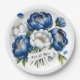 Assiettes En Carton Royal Blue and Silver Glittery Peony Mariage