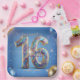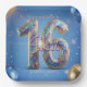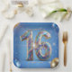 Make her milestone celebration truly unforgettable with this glamorous royal blue and gold Sweet 16 birthday party paper plates. Featuring spectacular 3D-style glitter numbers surrounded by sparkling confetti and elegant metallic balloons, this festive decor sets a luxurious and magical tone. The stylish typography allows you to effortlessly update the name and date for the guest of honor. Perfect for a modern, sparkle-themed sweet sixteen celebration for a teen girl!