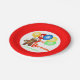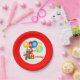 Un joyeux ours royal en peluche portant une couronne princière de bijoux bleus, jaunes, rouges et verts portant un assortiment coloré de ballons est une joyeuse assiette de fête du 2e anniversaire qui ajoutera une touche festive à votre table de fête. Personnaliser les assiettes avec le nom du garçon d'anniversaire en fait une chose spéciale. Le nom et l'année peuvent être personnalisés à l'aide du modèle fourni.