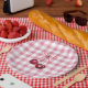 Assiettes En Carton Ruban à motif Vichy rose et carreaux pour fille mi