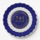 Prix Ruban, Bleu et Blanc-1er (premier)-Un ruban rond récompense avec texte or et jantes. Au centre du prix, on peut lire : 1ère place. Circuler autour des bords dorés plus de texte dit : Félicitations ! deux fois. Ce design primé est disponible en couleurs et styles assortis. Il est disponible en 1ère, 2ème et 3ème places. Le texte qui entoure se lit soit : Félicitations, soit Runner Up. Utilisez ce design sur n'importe lequel des produits de Zazzle.
