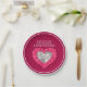 Fête d'anniversaire du mariage de Ruby plaques jetables en papier. Idéal pour ajouter une touche personnalisée aux fêtes spéciales d'anniversaire de rubis, aux fêtes de dîner et aux rassemblements informels. Personnalisez avec vos noms de couples heureux et photo dans le cadre de photo effet coeur rubis. L'art et le design du rubis rouge par Sarah Trett.