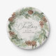 Élégantes assiettes en papier de vacances avec une couronne d'aquarelle de cônes de pin, de pignons et de verdure luxuriante avec un arrière - plan crème légère. "Joyeux Noël" est affiché dans un script vert foncé avec votre nom ci-dessous. Les assiettes de Noël rustiques sont parfaites pour les fêtes de fin d'année, les dîners de Noël et autres événements de vacances.