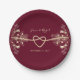 Ajoutez une touche d'élégance rustique à votre fête mariage avec nos assiettes en papier boho floral bordeaux chic. Personnalisée avec les noms de la mariée et du marié, ainsi que la date mémorable, chaque plaque présente un coeur de corde dorée brillant entrelacé à la dentelle dorée fleurie, créant un tableau charmant pour votre journée spéciale. Laissez chaque détail refléter la beauté de votre histoire d'amour.