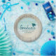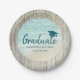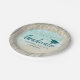 Ces assiettes de papier de fête à thème de plage rustique présentent une belle scène de plage pastel avec des vagues bleu aqua qui roulent sur le rivage, encadrées de bois patiné rustique, et décorées sur le dessus avec des lampes à cordes. Le mot "Graduate" est surmonté d'un casquette diplômé, et le nom et l'année de classe des diplômés sont en dessous.