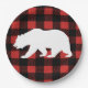Assiettes En Carton Rustic Buffalo Check Plaid & White Bear Silhouette